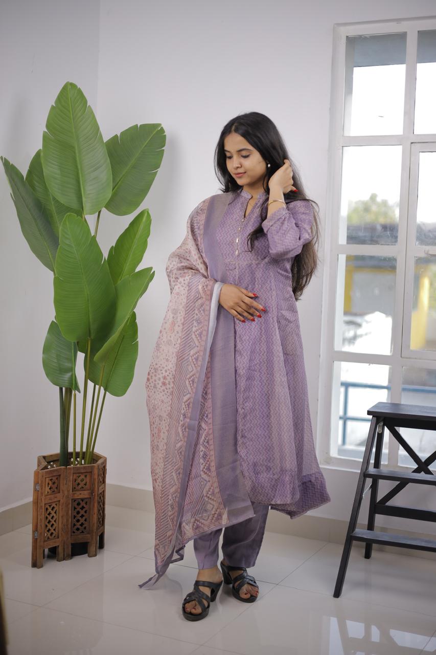 Whether you’re attending a casual gathering or a festive celebration, this Soft Tissue Anarkali will make you stand out effortlessly! Pair it with minimal jewelry and elegant footwear for a complete look.