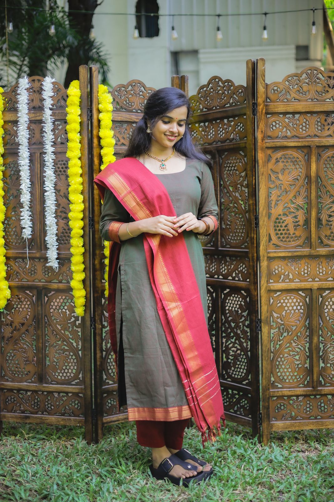 This Mangalgiri cotton salwar suit is a timeless piece that effortlessly blends tradition with modern elegance, making it a must-have for any wardrobe!